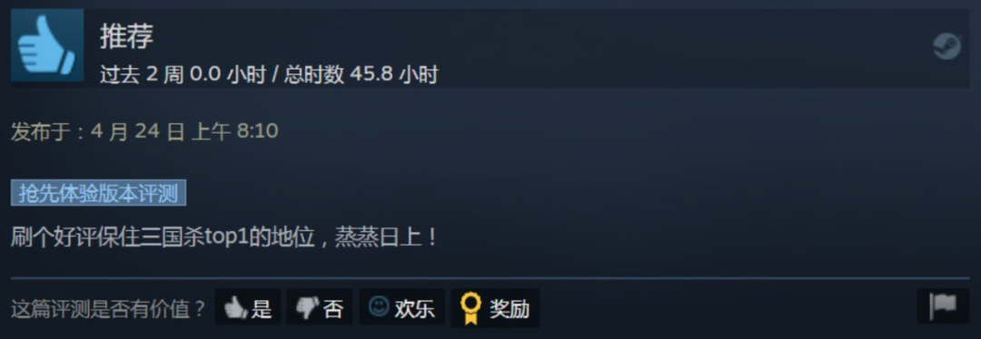 我知道这说法听起来有点奇怪,《三国杀》玩家应该是全世界最巴不得这游戏赶紧死的一群人。就比如去年底游戏上架Steam后,很快被闻讯而来的玩家刷到7%好评,以绝对优势荣登Steam“差评之王”的宝座。