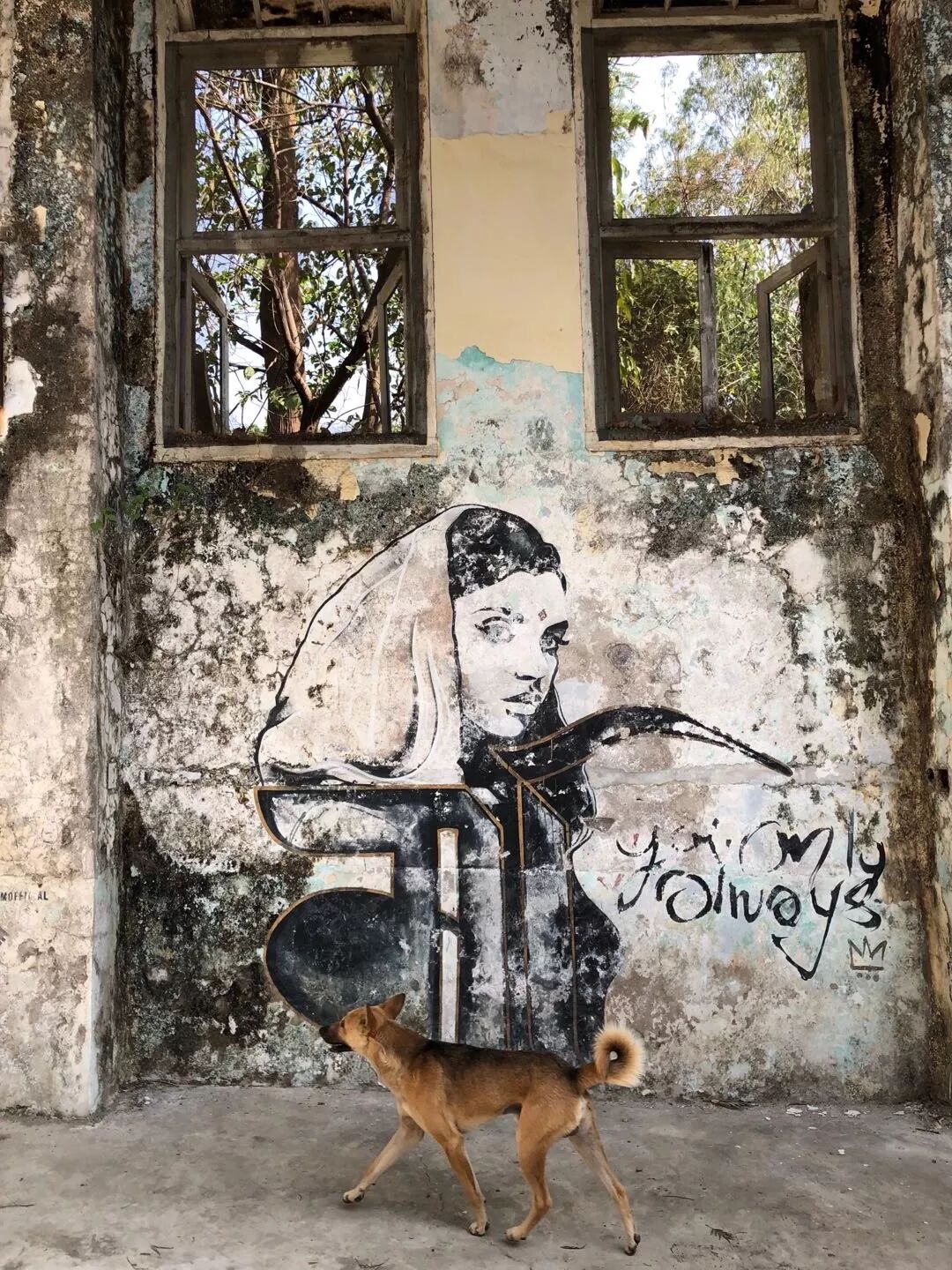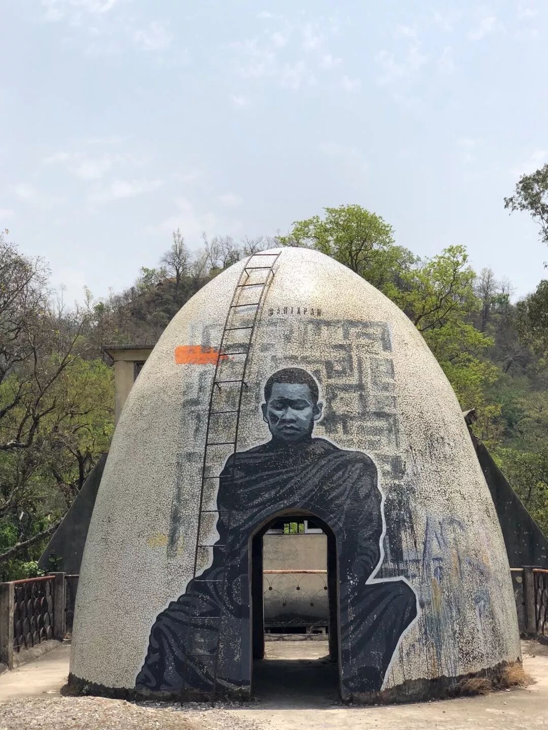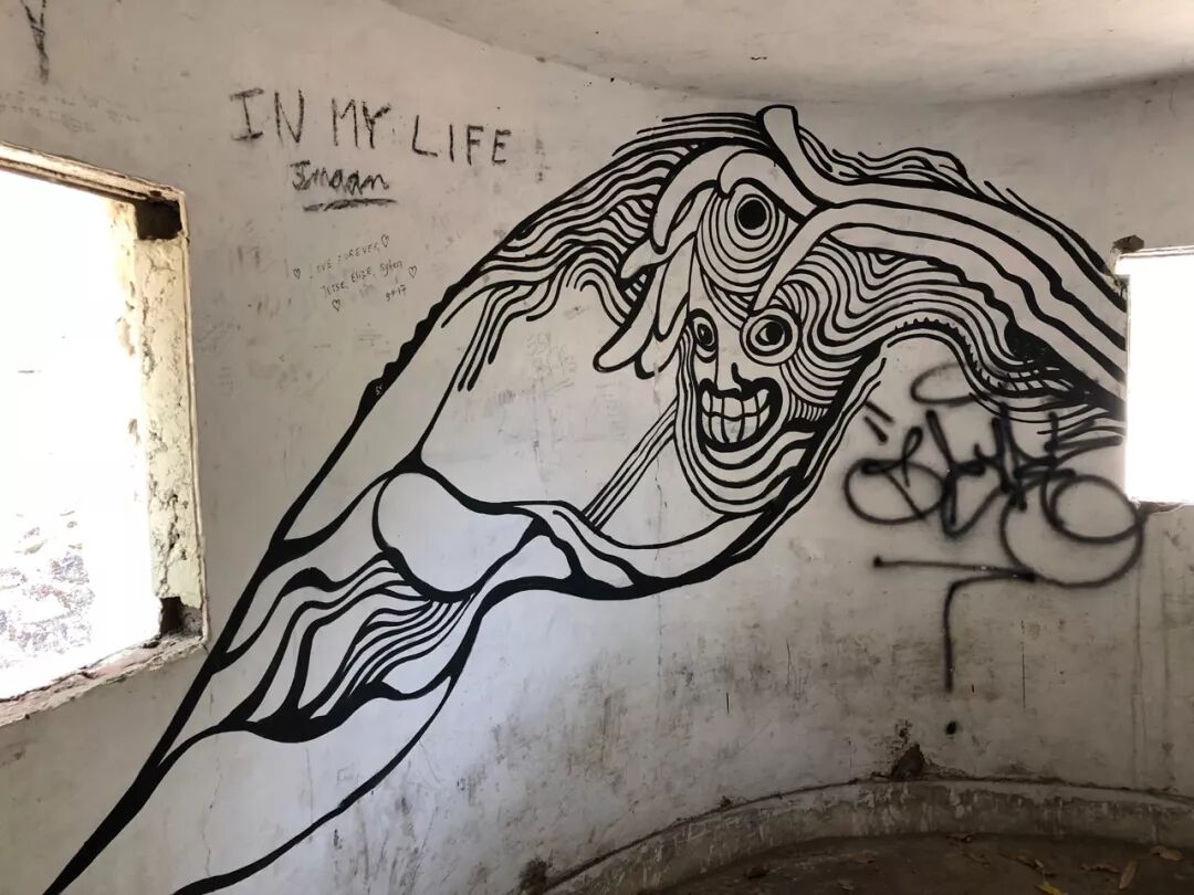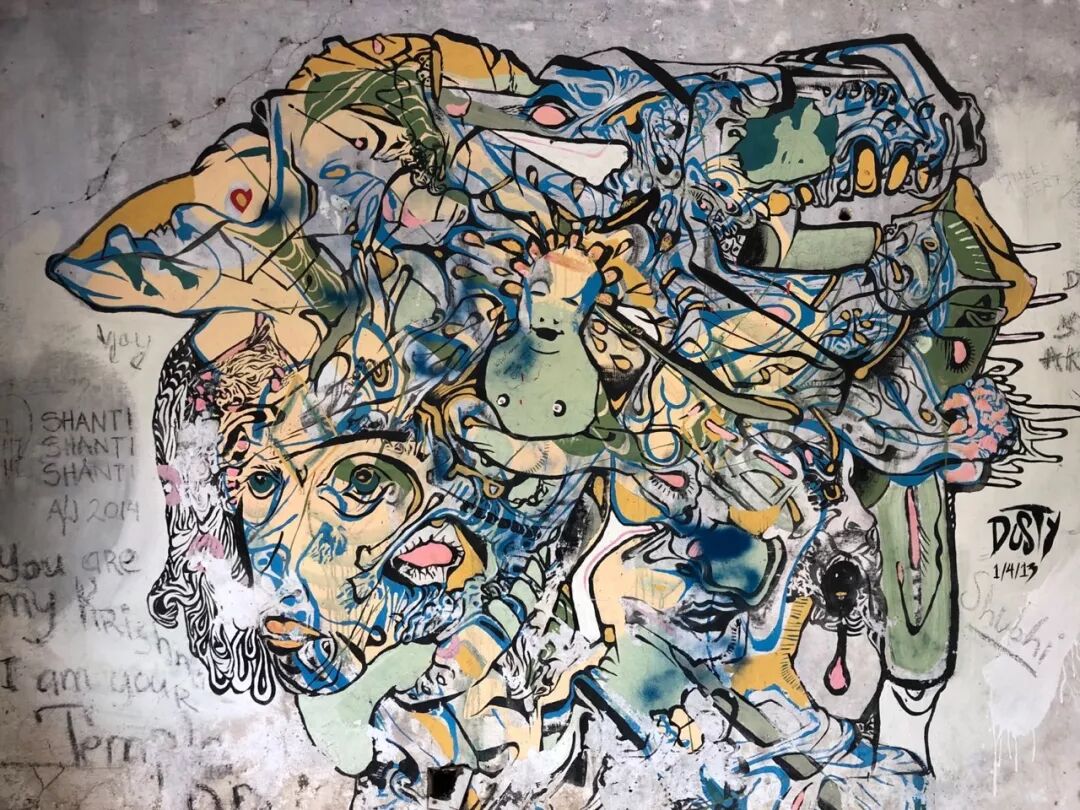 走了大半天,突然看到这样一个地方,绝对令人震惊。这地方如果走一圈的话,会发现非常不印度,都是现代建筑的痕迹,废墟墙上到处画着涂鸦,附带有各种披头士的音乐符号和元素。
