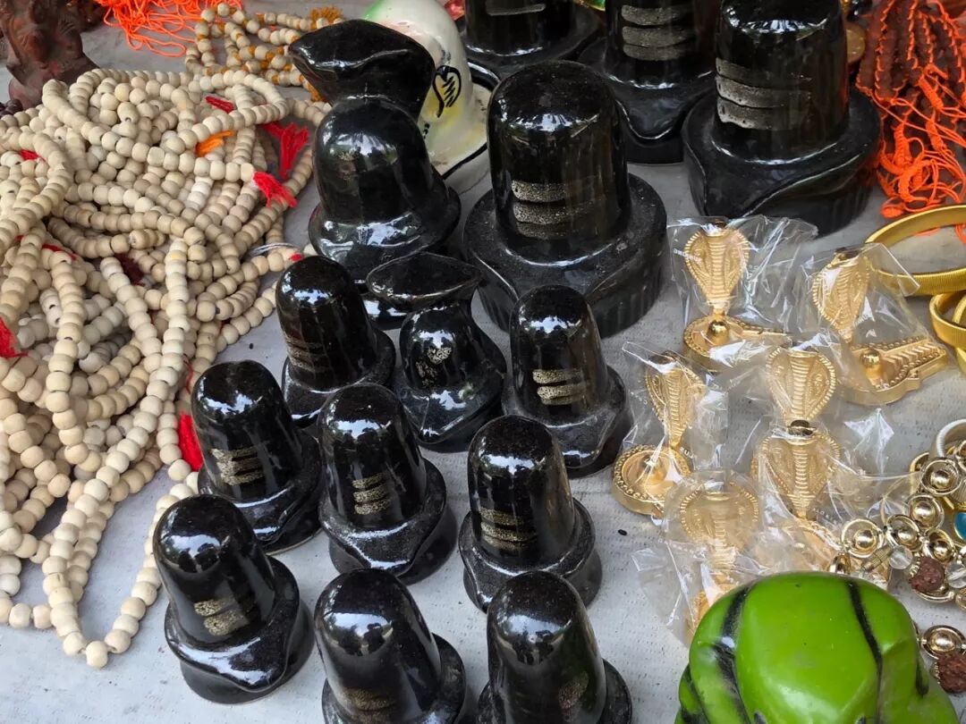 这个黑色的小东西,就是所谓的「林伽」。这些手工艺品,看起来也不像印度造的,问了一下,说大部分来自尼泊尔。有没有来自义乌小商品市场的东西,就不得而知了。