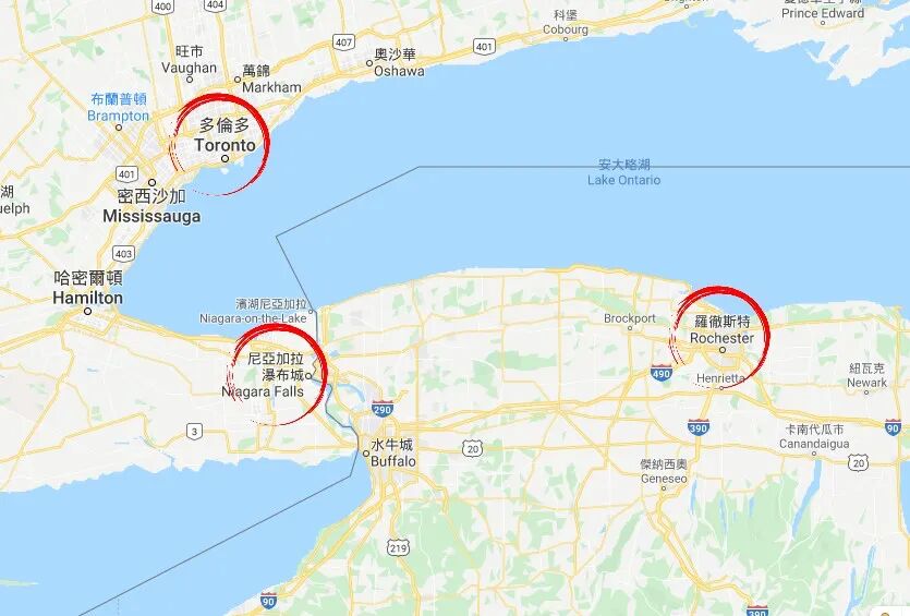 从罗彻斯特经尼加拉瀑布到多伦多约170英里,将近3小时的车程