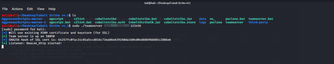 启动Cobalt Strike服务器,如下所示:
