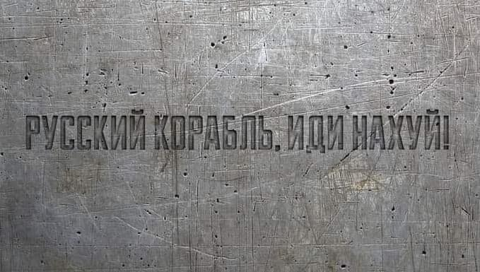● 乌克兰网络上用蛇岛边防士兵留下的句子制作的图片,“俄罗斯船,去你妈的” / 受访者提供