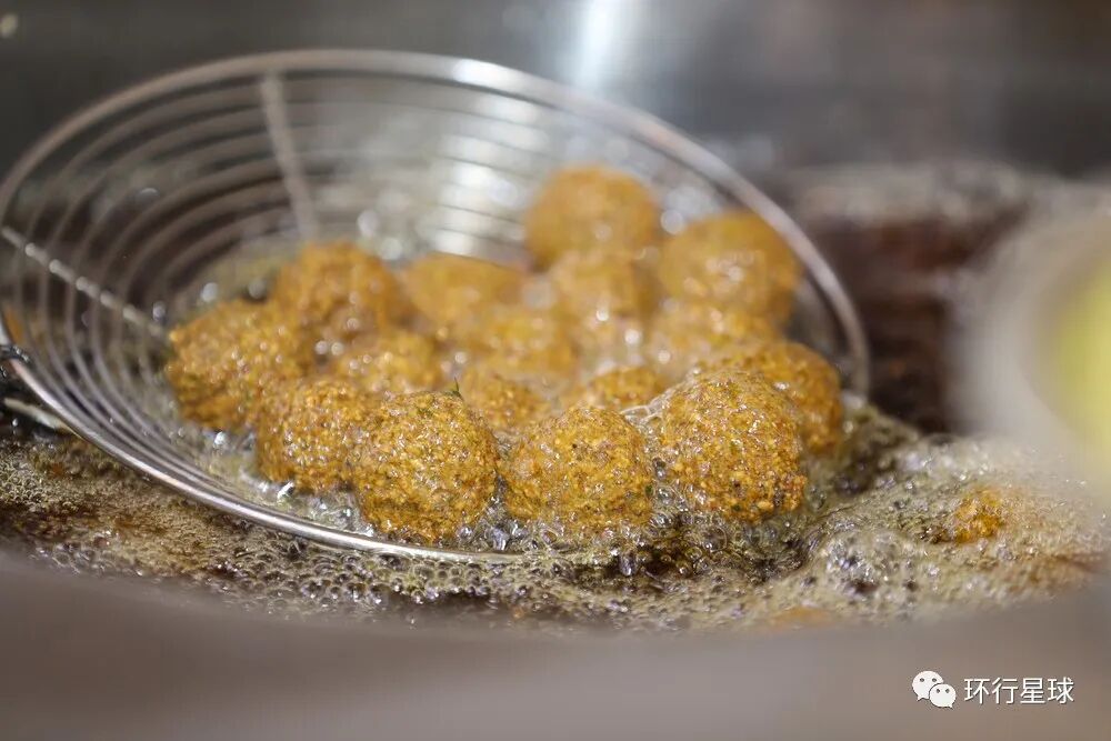 第二呢,则在于调料配方上,很多比较火爆的falafel店,他们的豆丸里都会加一种东西——香菜籽,其实香菜籽单独用油稍微炸一下,味道就非常的香,埃及人把它用在豆丸里,是一个非常棒的举措,如果你一口咬下去刚好咬到了炸熟的香菜籽,那独特的香味会让你开心得笑起来。