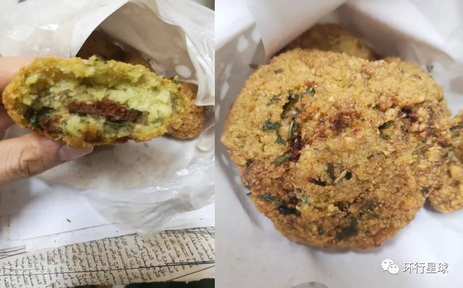 另外我还发现一种加了韭菜的,韭菜的味道有多给力,懂的都懂。所以它做出来的炸豆饼味道也是别具一格。