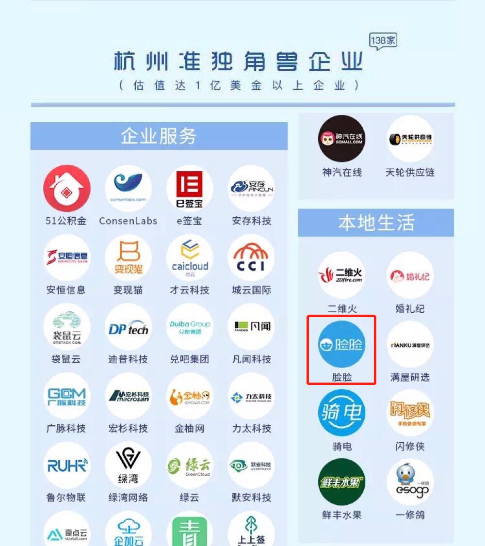 会上杭州市创业投资协会联合微链共同发布《2019杭州独角兽&准独角兽企业榜单》,携手见证杭州创新创业大军的成长与飞越。新零售场景运营商——脸脸,连续两年上榜“杭州准独角兽企业(估值达一亿美金以上企业)”榜单,与E签宝、二维火等企业共同构成杭州138家“准独角兽”阵营。