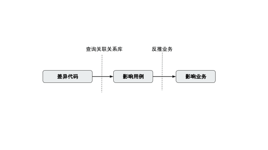 我们有了用例与代码之间的关系映射,有了提交增量代码差异记录,就可以实现逆向回溯。利用代码的差异,通过查询服务就可以在上面提到关联关系数据库中反推影响的用例,以及上层的业务。这样可以帮助QA快速划分测试范围,减少过度测试。
