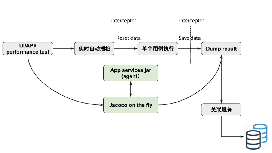 利用AOP原理,在自动化框架的执行器加一个拦截器,在覆盖率收集开关打开时,请求执行前,这个过程类似于测试框架中的before hook:reset 被测服务桩数据,也就是上一次测试产生的dump 文件,请求执行后,这个过程类似于测试框架中的after hook:用api导出内存中的覆盖率数据,我们利用反射拿到用例方法名,利用关联服务将之与对应的 dump结果关联起来,实现自动插桩功能,快速帮助我们建立自动化用例与覆盖率之间的关系。
