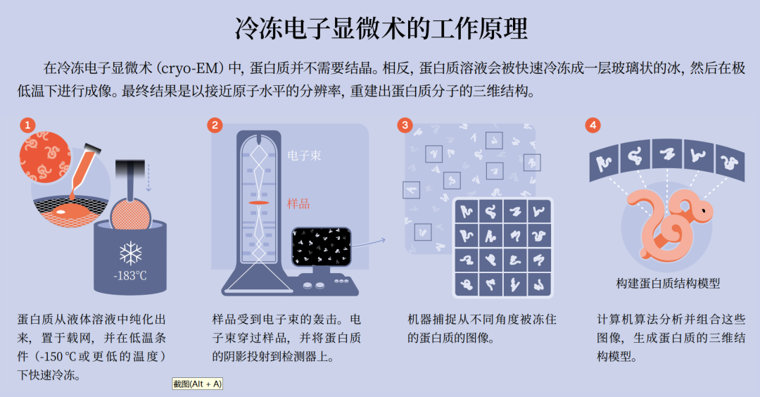 佩拉基斯认为,他和其他研究人员仍会在一定程度上继续使用X射线晶体学。但是,为了得到初始的蛋白质结构,许多人已经开始将深度学习预测的蛋白质结构与先进的电子显微镜技术(例如冷冻电子显微术)结合使用。冷冻电子显微术(cryo-EM)又称冷冻电镜术,是一种用于分析快速冷冻的含水生物样品的透射电镜成像技术,通过电子轰击样品进行分析。将这两种技术相结合之后,研究人员就能迅速开展对蛋白质功能的研究,专注于研究更有趣的科学问题。库雷希表示,AlphaFold2“极大推动了”冷冻电子显微术的应用。
