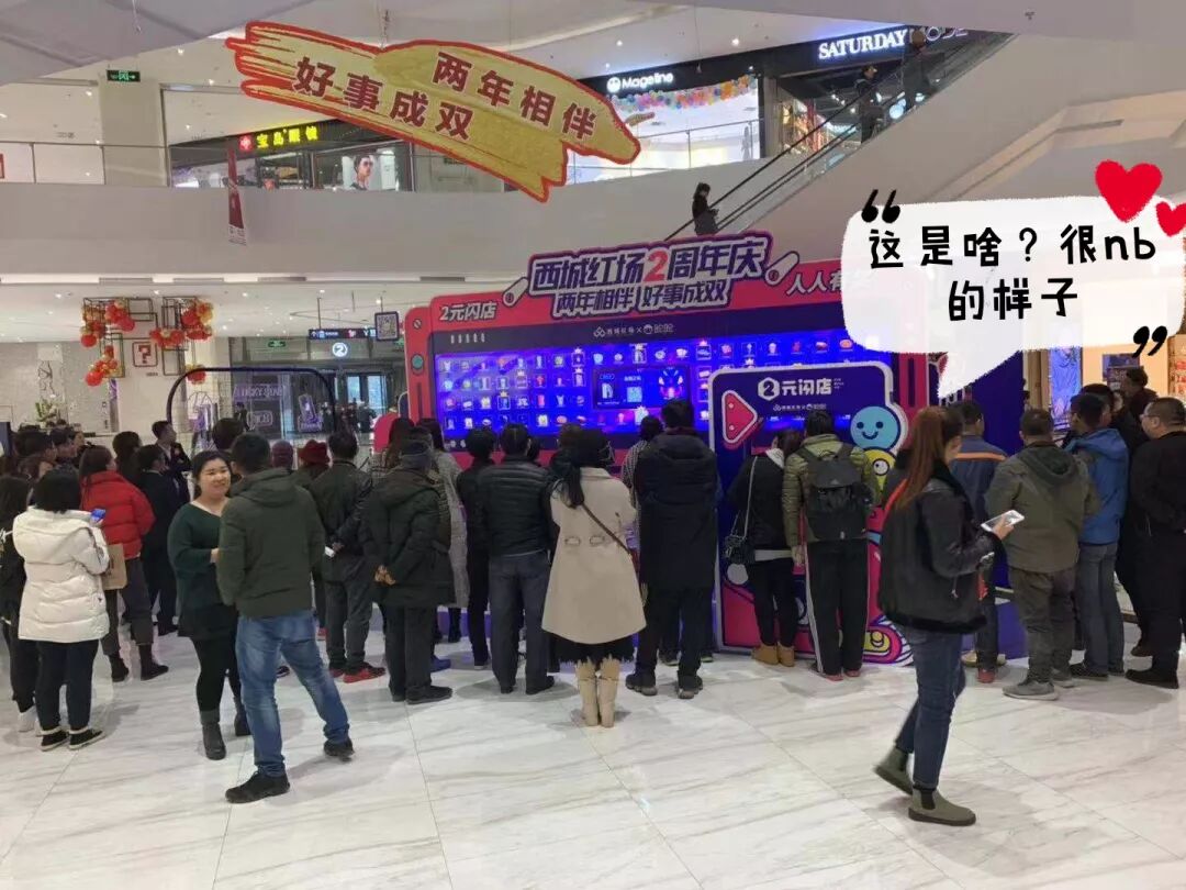 西城红场继组织全员培训之后,率先进行了2元店预热测试,现场气氛异常火爆,大批消费者纷纷过来围观这神奇物种,不知道的还以为是哪位神秘大咖降临呢。