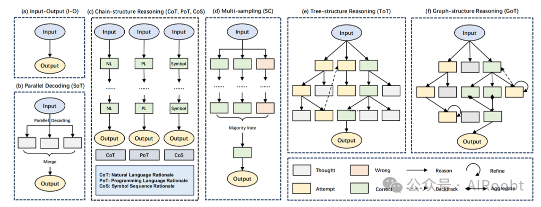 图2展示了推理的发展过程,从直接的输入/输出,到链式结构,再到树和图结构。