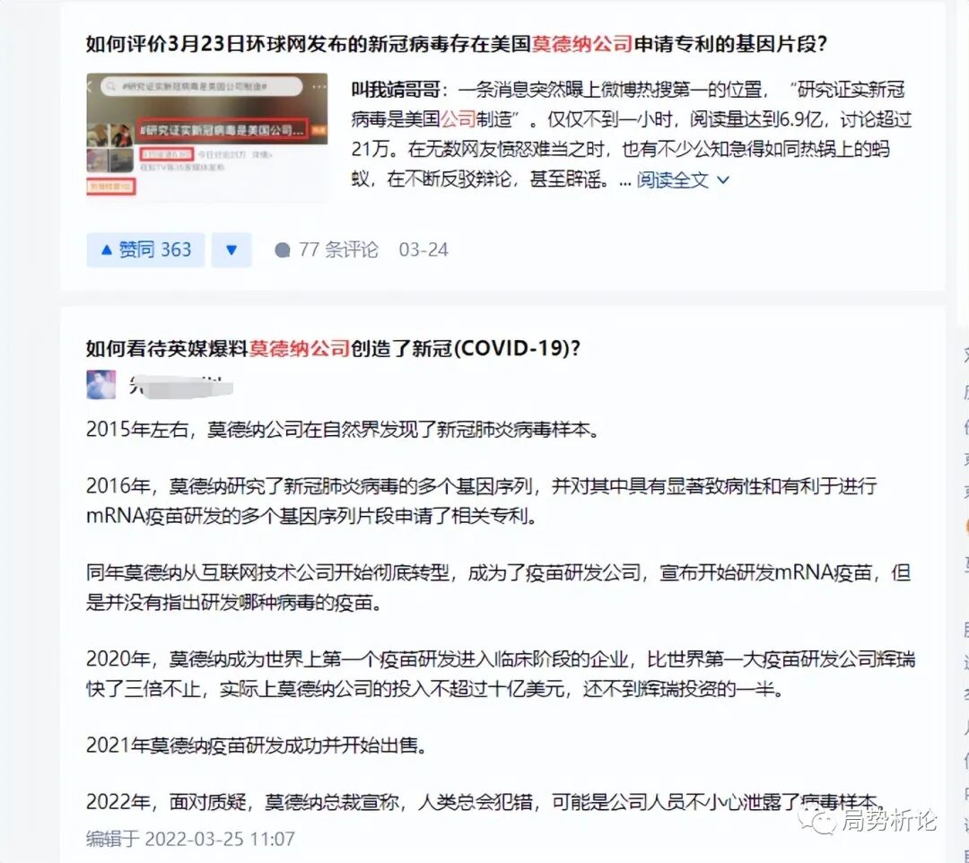 3月23日英国媒体《每日邮报》突然放出猛料称,‘新冠病毒就是美国制造’。导致全球大疫情的新冠病毒的基因中,居然含有美国莫德纳公司在2016年2月申请的专利基因片段,而这个基因序列通过自然进化而随机出现在新冠病毒中的概率为三万亿分之一。”