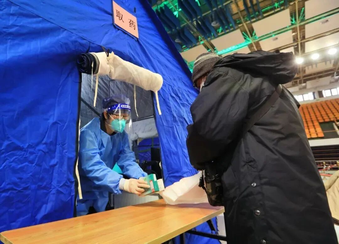 ▲2022年12月14日,西城区广安体育馆简易发热门诊正式启用。居民在排队取药。新京报记者 王嘉宁 摄也是这一天,医护面临大减员,“三分之一的同事都阳性了”。陈蓉正是替一位阳性同事的班。当天中午,她突然感觉肌肉酸痛,身子捂在防护服及面屏、口罩、鞋套、帽子里,一阵冷一阵热;嗓子逐渐干疼得像要冒烟儿。下班回家时,她的小腿痛到难以行走,“感觉肌肉在溶解”。一测体温,已经烧到了39摄氏度,抗原显示阳性。同样是在12月8日,许帆与同事以二人之力,接诊了过去四位医生才能完成的病人量。他记得,他的病人中“有接近半数在发烧”。许帆说,进入12月后,随着同事们不断地感染阳性、离岗休息,他开始频繁地顶替他人班次。从12月1日至8日,他值12小时班七次,这通常是半个月才需完成的工作量。12月9日,他在家休息,逐渐感觉全身乏力。次日他发烧至40摄氏度,浑身胀痛,抗原显示果然阳了。三年来,老师和学生都经历了多次网课,这次的特殊性是开始有人“阳”着上课。班里有一个人发烧了,继续在线上听课,稍微调皮的孩子就会很惊讶地跟老师报告说,“老师他得新冠了!”比如三年级的班级里,老师一边咳嗽一边坚持上课,老师会和学生坦言,“不好意思,现在老师是感染了新冠”,但是学生们并没有异样的目光或反应。明瑾觉得,小学里的孩子对新冠病毒的认知,有一个从害怕到逐步接受的过程。“接受了它是一个我们可以生的病,我觉得对于孩子也是一个进步。”一周之后,班里25个学生,有四分之一因为生病请假。明瑾在上课的时候,提问了一个学生,开麦回答的人说,“我是孩子家长,孩子生病了在床上躺着呢。”12月10日开始,董浩发现,同城送药的单子频繁涌进来。他平时主要在房山区域跑。这次他决定加入北京市内的同城跑腿,他一共注册了两家平台,成为众包骑手。董浩比较了下,近一个星期,在市内当同城跑腿的感受是,基本上7、8公里配送费就能到50块钱。而如果继续在房山跑,同样的距离可能只是20多元。取药的地点千差万别,有时候是一个私人住址,有时候是药店,有时候是医院。董浩说,在药店取药,经常遇到因为插队吵架的情况。12月10日这一天,某种药只剩最后三盒了,前面排队的人说要全部买走,后面的人嚷嚷着不同意,店主决定一人一盒,董浩随口一问价格,“一盒要卖200,我心想我不买。”在这之前,视频里的董浩是这样的:左右两边肩膀上分别挂着两桶5L矿泉水,左右两只手分别提着4、5袋装菜的袋子。12月10日后,他送的物品往往只是几盒药,几包口罩,几盒抗原,配送费还高,配送时间也卡得没有那么紧,但风险也高,收药的人基本也阳了。他也加大了对自己的防护,里面一层医用口罩,外面一层N95口罩,最外面是头盔面罩。送完一单,给自己喷一下酒精,继续上路。只有在人少车少的空旷地带,他会摘下口罩,大口呼吸。