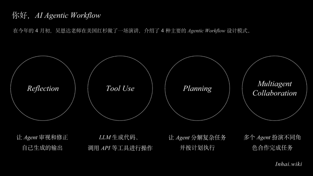 在今年的 4 月初,吴恩达老师在美国红杉做了一场演讲,介绍了 4 种主要的 Agentic Workflow 设计模式。