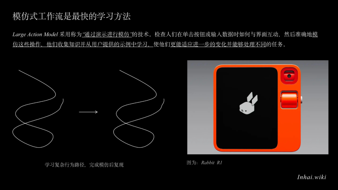 Large Action Model 采用称为“通过演示进行模仿”的技术。检查人们在单击按钮或输入数据时如何与界面互动,然后准确地模仿这些操作,他们收集知识并从用户提供的示例中学习,使他们更能适应进一步的变化并能够处理不同的任务。