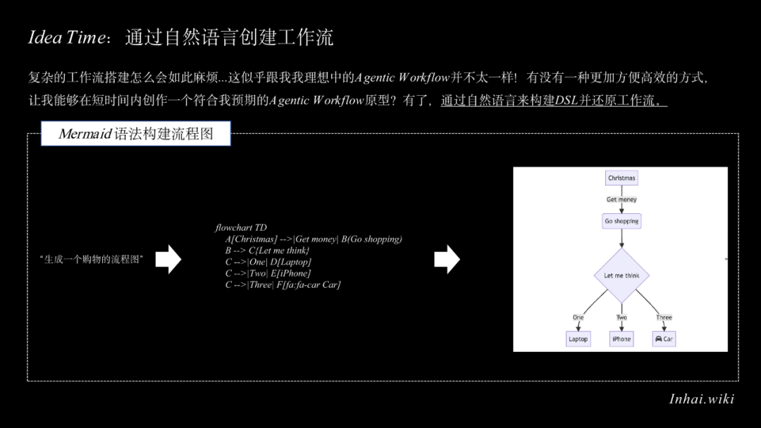 复杂的工作流搭建怎么会如此麻烦...这似乎跟我我理想中的Agentic Workflow并不太一样!有没有一种更加方便高效的方式,让我能够在短时间内创作一个符合我预期的Agentic Workflow原型?有了,通过自然语言来构建DSL并还原工作流。