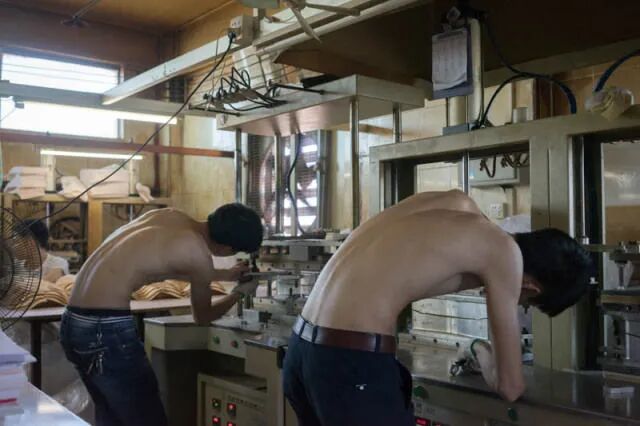 一件文胸从材料到成品,须经过十几道工序,小厂一般由1、2名工人负责一道。工人们白天挤在充满热气和内衣的房间里,几位肚腩已掀起皱褶的老员工,常常脱口不离黄段子,似乎这样才能抵消漫长而机械的时光。还有一位耳朵不好的大叔,喜欢把厂里唯一的音响开到最大,播放含有黄色情节的小说,机器上的灰尘也跟着晃动起来。