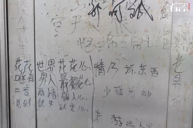 工人留在车间门上的文字,“花花世界花花心,唯有男人最花心,三言两语骗人心,见到靓女就变心。”