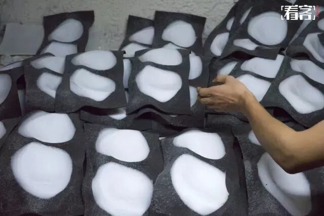 同样来自四川泸州的杨利,来回操作着四台机器。一天下来,他能做出1000多件文胸模型。加热后的模型散发着刺鼻的胶水味,杨利倒不在意,“闻多了就习惯了”。