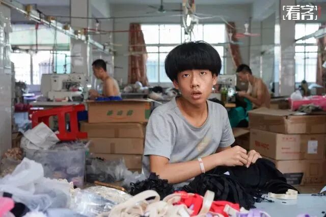 七楼的工人总认为,五楼藏着许多美女。他们鲜少去五楼,否则就能知道,那里坐着的依然是男工。五楼的工人喜欢戴耳机,相互间不怎么交流。17岁的李佳便身处其中,负责剪内衣成品的线头,他是内衣厂年纪最小的员工。