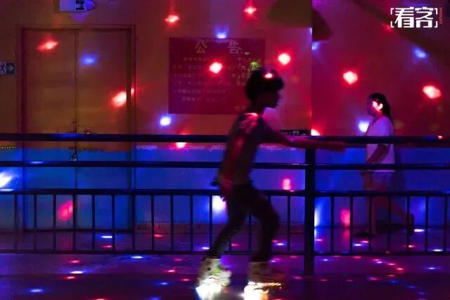 轮滑场位于一栋改造过的民居楼里,两人沿着一条狭窄的楼梯上去,老旧的楼梯扶手随着音乐摇晃。