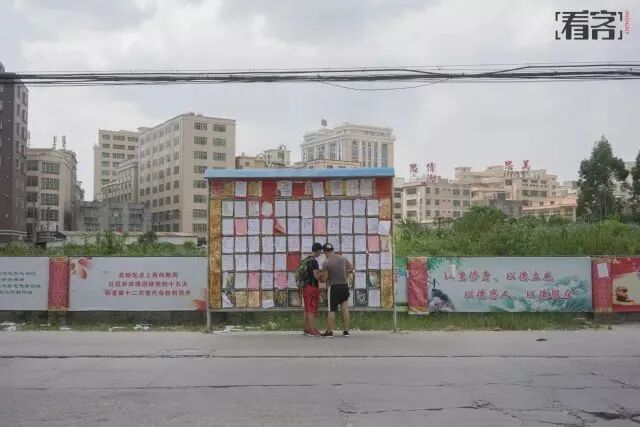 陈店镇一街道旁的招工栏上,贴满了内衣小工厂的招工传单