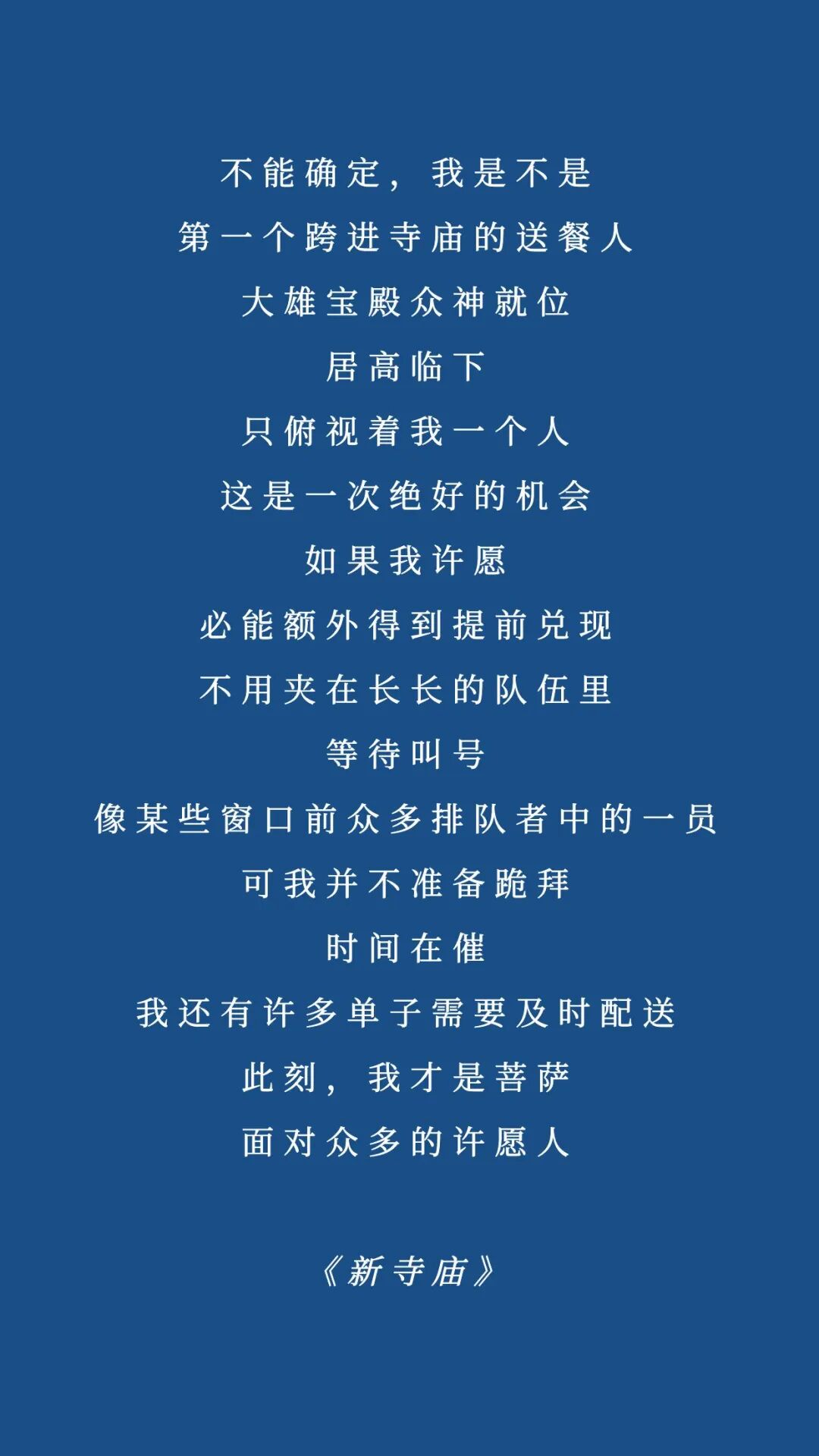 这首诗中,面对外卖订单的许愿人,一句‘我才是菩萨’,刚刚好体现了