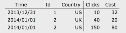 类似于字典搜索查询的键值对格式,Doris 中所有数据分成两列:Key 列和 Value 列。如下图所示,Time、Id、Country 列共同组成 Key 列,Clicks、Cost 列为 Value 列。Key 列有序可进行快速查找,Value 列可以按照具体聚合类型内部完成数据聚合。