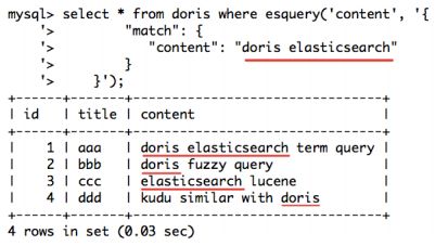 3、Doris 在 ES 开发的过程中,分别借鉴 ES 和 Palo 的长处,支持了 Elasticsearch 多表 Join 操作,同时引入 Elasticsearch 的语义搜索功能,扩充了 Doris 的查询能力。