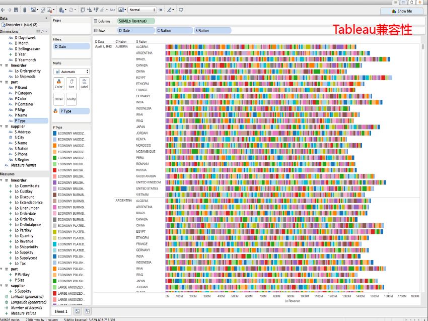 Doris 的前端展示,可以使用 MySQL 专属展示器 Tableu。下图就是使用 Tableu 将 Doris 数据可视化的一个范例。