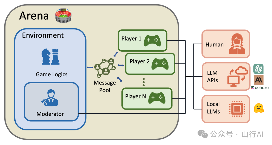 •ChatArena(或Chat Arena)是一个面向大型语言模型(LLMs)的多智能体语言游戏环境。其目标是发展人工智能的沟通和协作能力。ChatArena提供:•用于构建多个大型语言模型(LLMs)的交互环境的通用框架。•一系列预构建或社区创建的环境。•用户友好的界面,包括Web UI和命令行界面。