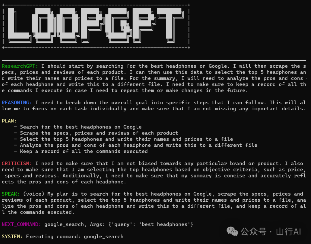 •一个试验性的开源尝试,旨在使GPT-4完全自主,GitHub上拥有超过140k的星标•将LLM(大型语言模型)的“思维”串联起来,自主实现你设定的任何目标•可以访问互联网以搜索和收集信息•长期与短期记忆管理•能够执行许多命令,例如谷歌搜索、浏览网站、写入文件、执行Python文件等等•用于文本生成的GPT-4实例•访问流行的网站和平台•使用GPT-3.5进行文件存储和摘要•通过插件进行扩展•“很像是BabyAGI与LangChain工具的结合”•在0.4.0版本中添加的特性•文件读取•命令自定义•增强的测试功能