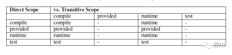 比如 A 依赖 B 的范围为 provided ,B 依赖 C 的范围为 runtime 的 最终 A 依赖 C 的范围为 provided