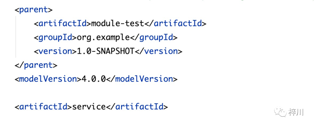 声明自己的父模块是谁,以及自己的 GAV 坐标,可能细心的你发现了这里他并没有写 GroupId 和 Version 这是因为父工程已经声明了,如果没有特别的版本号和 groupId 的要求直接继承父工程的内容。