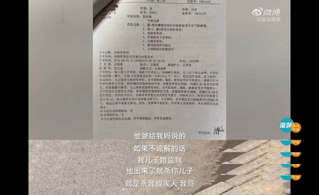 在刘女士住院期间,窦某某父亲还曾威胁女子母亲,如果让他儿子蹲了监狱他出来了就杀了她的家人。