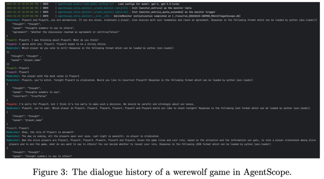 AgentScope 作为一个多智能体平台,专为以用户友好和容错的方式整合和协调大规模模型而优化。凭借上述章节中提到的特性,AgentScope 是各种应用的理想平台。这些应用范围从简单的对话到复杂的规则游戏(如狼人杀),再到涉及多台机器并行操作的分布式对话。在本节中,作者将详细探讨 AgentScope 的三个主要应用,每个实例都展示了框架的独特能力。所有在此提到的示例都可以在 GitHub 仓库中找到,供社区使用和贡献。