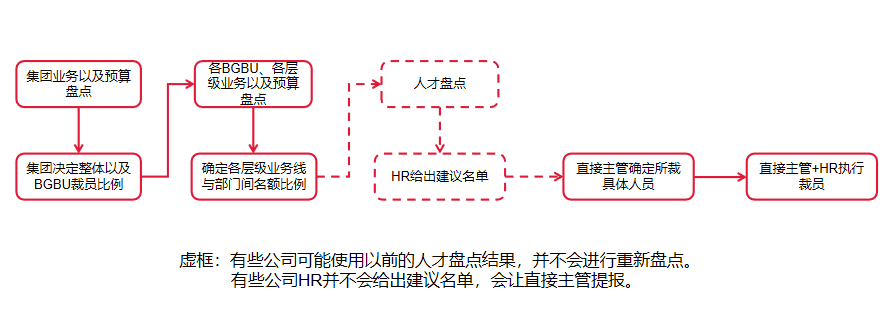 说明:本文并非以具体某一家大厂为具体描述对象,每家公司有其特殊的流程,因此所描述的流程不一定适合所有公司。只是提供一个大厂裁员的逻辑框架,具体操作上可能存在流程和操作上的节点增加以及前后顺序变化。