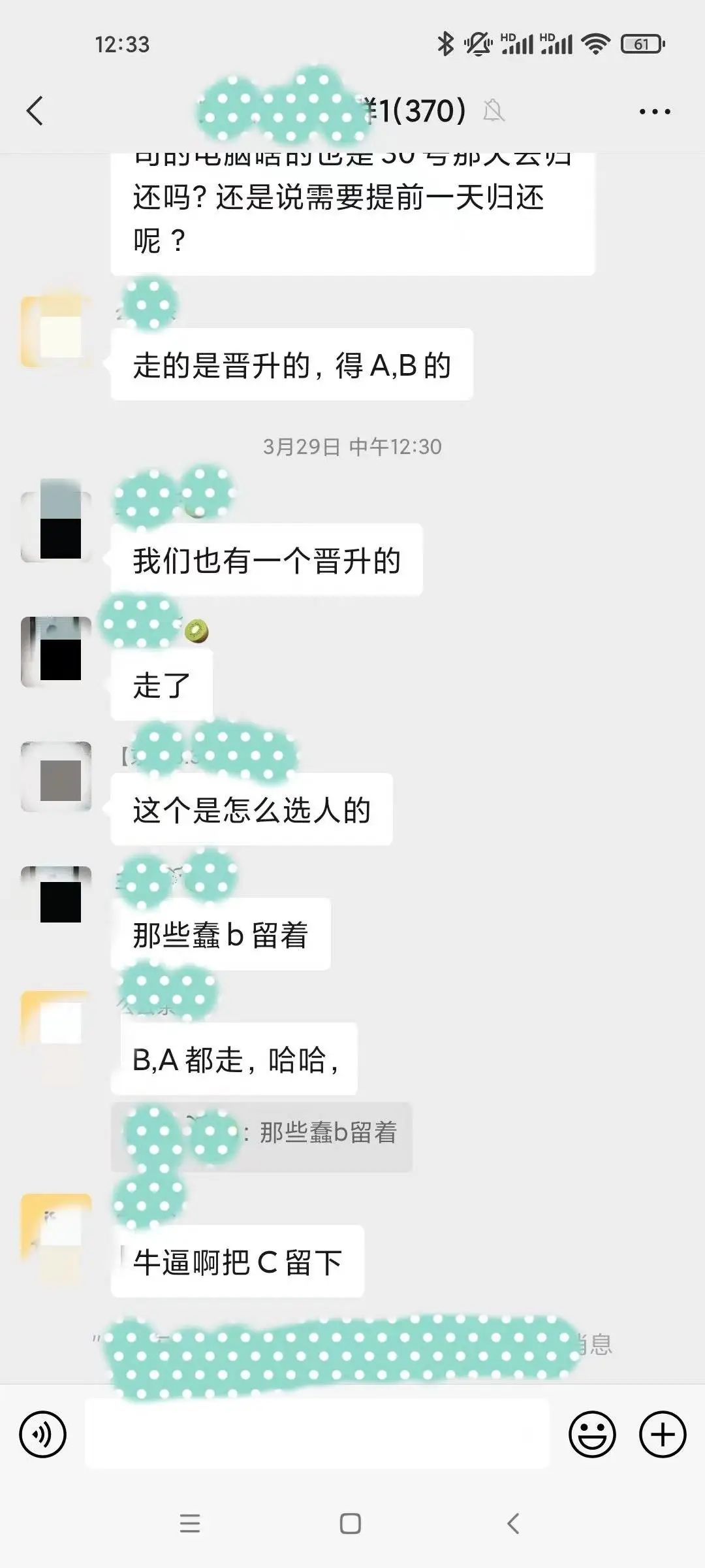 裁人的选择也是匪夷所思,有部门走2个人,走的全是绩效为A,而C的留下,有部门走的是晋升的、有部门走的人是获奖的,留下的是绩效差的。