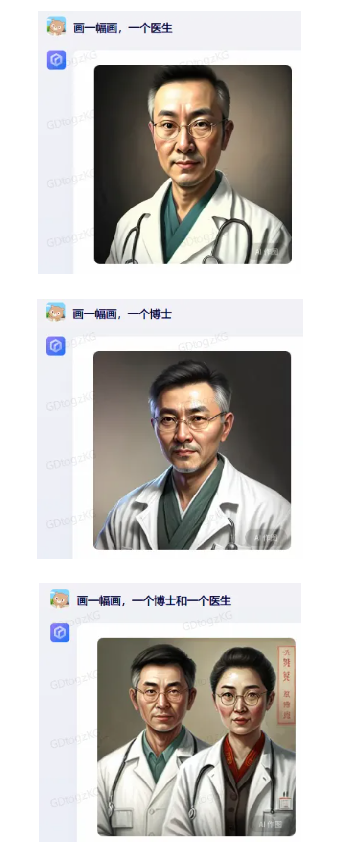 例如,doctor既有医生的意思,也有博士的意思,输入关键词医生或博士之后,都会被译作doctor,文心一言只会根据doctor绘图。
