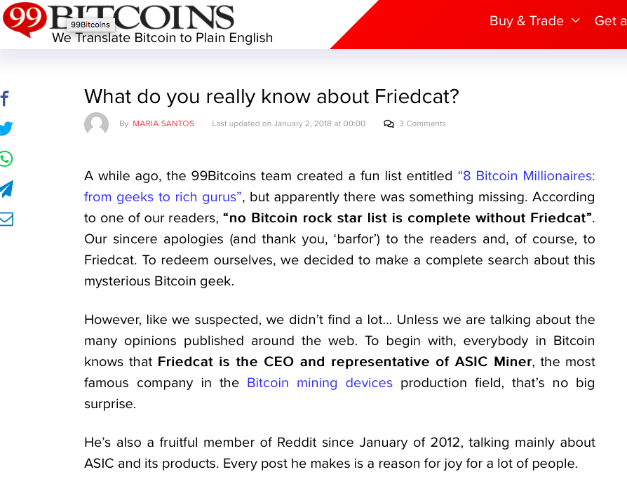 你们知道烤猫是谁吗?比特币圈外的人或许不认识烤猫,但在圈内,他可是大名鼎鼎,被称为“币圈第一人”。