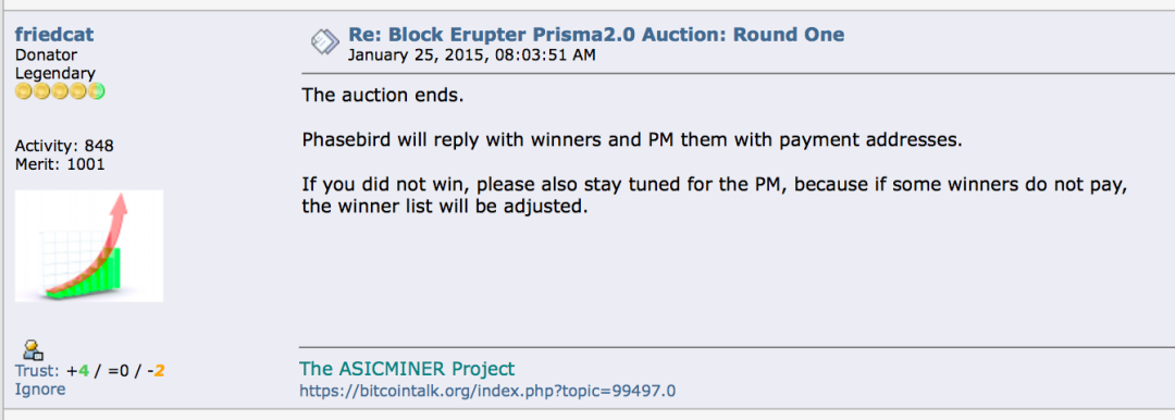 ASICMiner项目在全球比特币圈内引发高度关注。当时投资这个项目的国内投资者中就有后来成了矿霸的吴忌寒和网络作家“疯狂小强”(本名姓谢)。他们对烤猫团队能力的深信不疑,代表了许多投资人的心声。