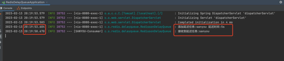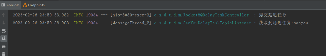 sanYouTaskDelayQueue.offer(new SanYouTask("三友的java日记5s", 5L));