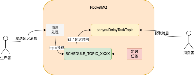 创建一个消费者,监听sanyouDelayTaskTopic的消息。
