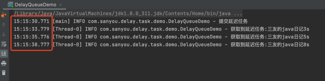 sanYouTaskDelayQueue.offer(new SanYouTask("三友的java日记3s", 3L));