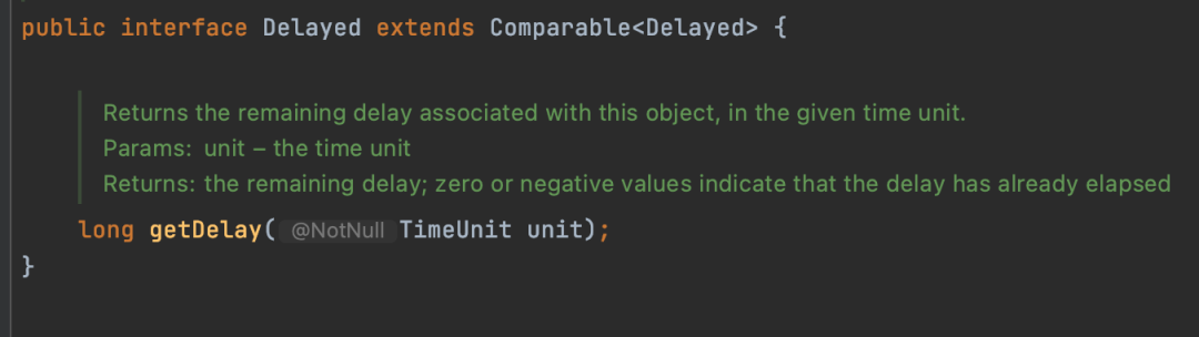 getDelay方法返回这个任务还剩多久时间可以执行,小于0的时候说明可以这个延迟任务到了执行的时间了。