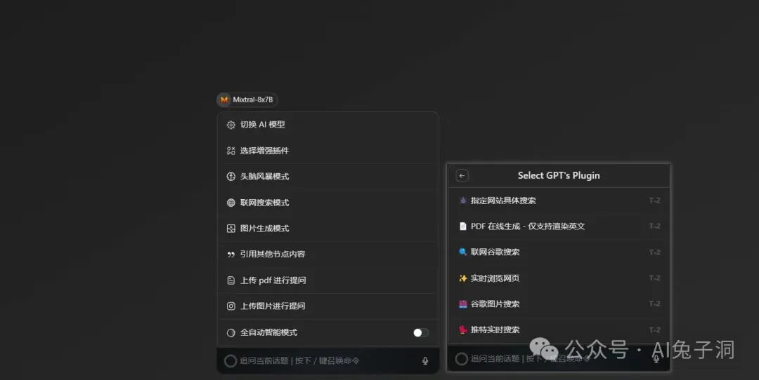 如果四种模式都不选的情况下,则是普通模式,支持自定义选择本次交互要用的模型,可选项很多也很强大,具体下面再说👇