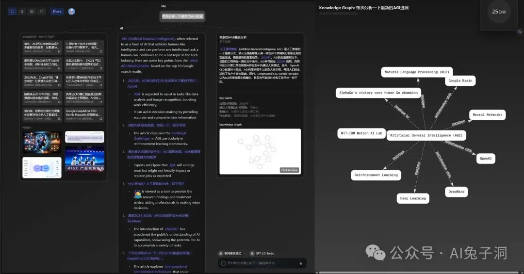 最终搜索的所有结果都会整理成一段分析总结、关键点和知识图谱,这对于从0开始搜索和学习新知识的人来说,将会带来非常大的指导帮助。