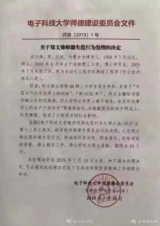 这些不再精致的年轻人得逞了。郑老师被处理了,两年不能上讲台。这是有心向学的成电学生的损失。