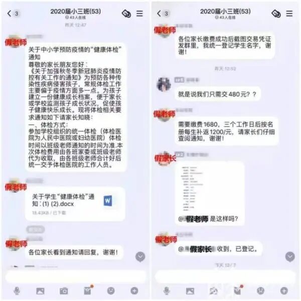 伪装成老师向家长收取“疫情体检费”,