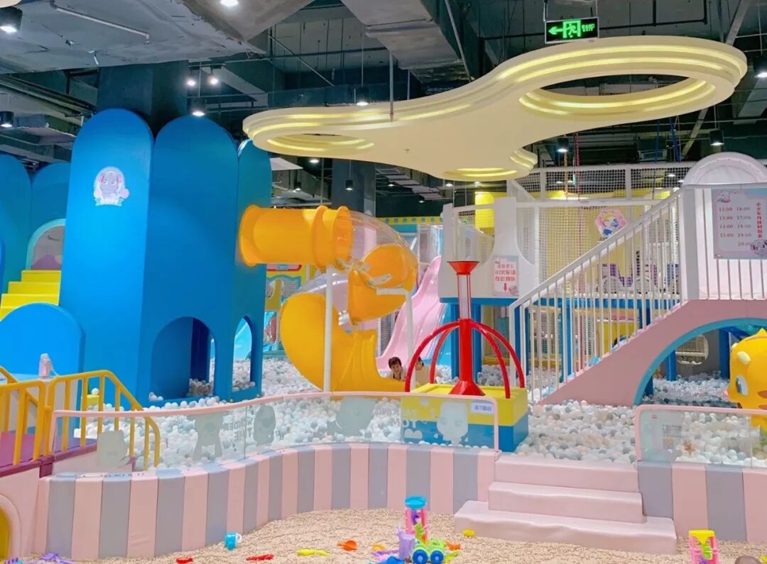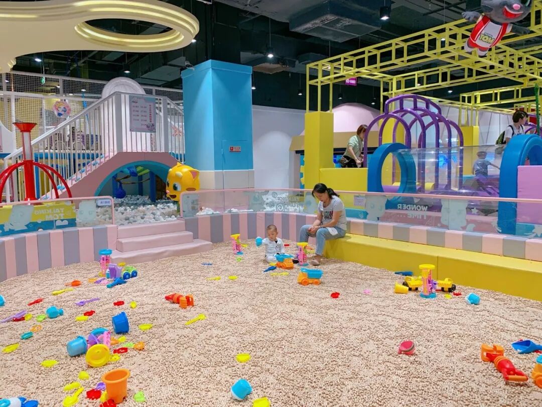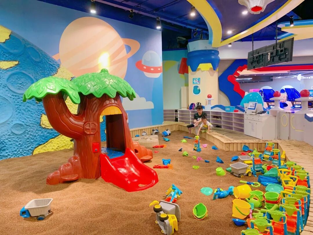汤姆猫儿童乐园囊括了淘气堡+滑梯+双层追逐通道+沙池等一些基本的游乐项目,沙池用的是自然风干的纯松木颗粒,去过的家长都夸奖干净、卫生,可以放心玩。