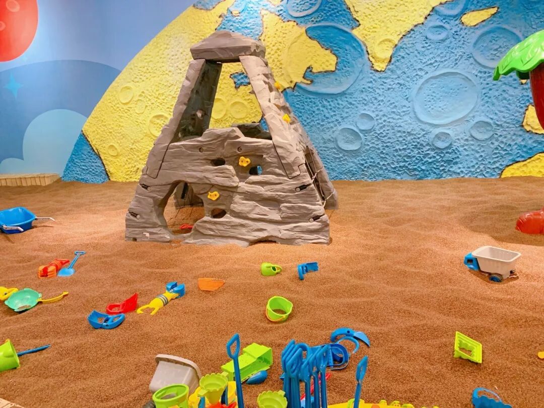 冒险岛沙池,除了玩沙子,还有小的玩具供孩子们玩耍,布置可以说是贴心了;